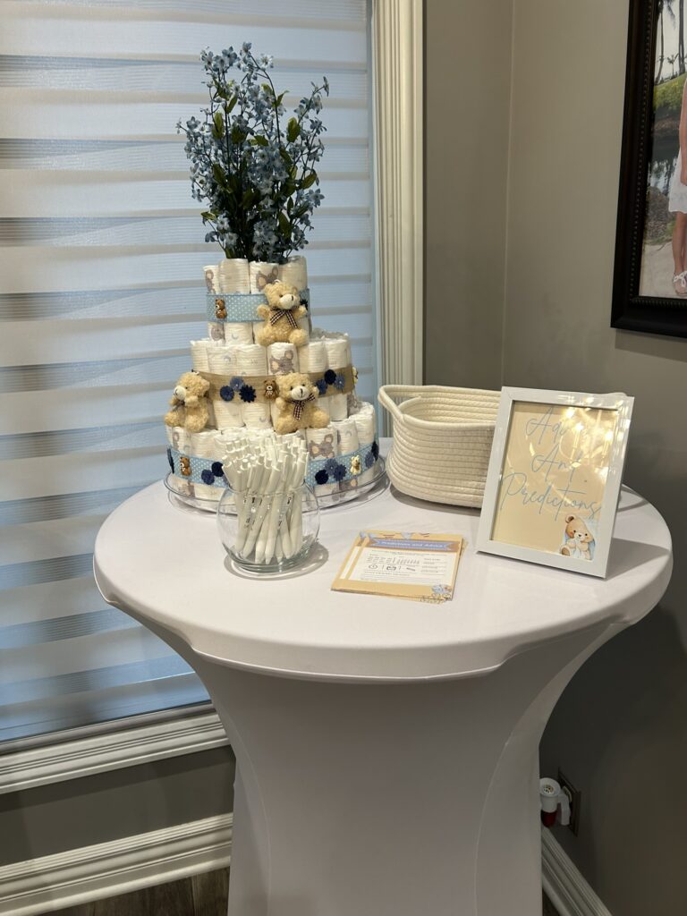 - Add a personalized banner or welcome sign to make the setup feel intentional and photo‑ready for the mom‑to‑be.