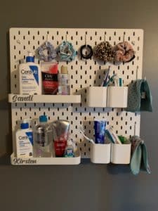 Think about your bathroom space and baskets and totes that are needed in that space.