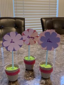 I decided to make three small vases, in purple, pink, and yellow. Since I’ll be placing them next to each other, I want the florals in my center display to be a little bit taller, so I actually used two additional floral stems on purple Easter Peeps decoration.