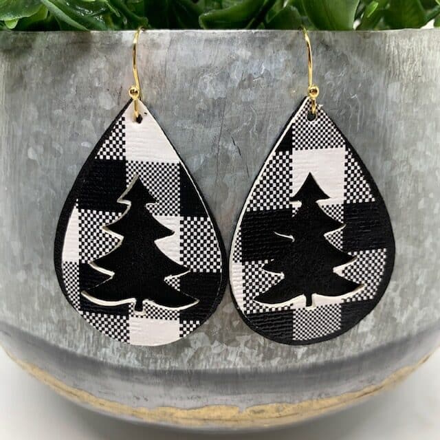 These Christmas tree diy faux leather earrings are the perfect way to add a holiday touch to your accessories. It’s easy to make faux leather stacked Christmas tree earrings. This post will show you many project ideas, with LOTS of photos. Scroll beyond all the project photos and you’ll find step by step instructions and photos.