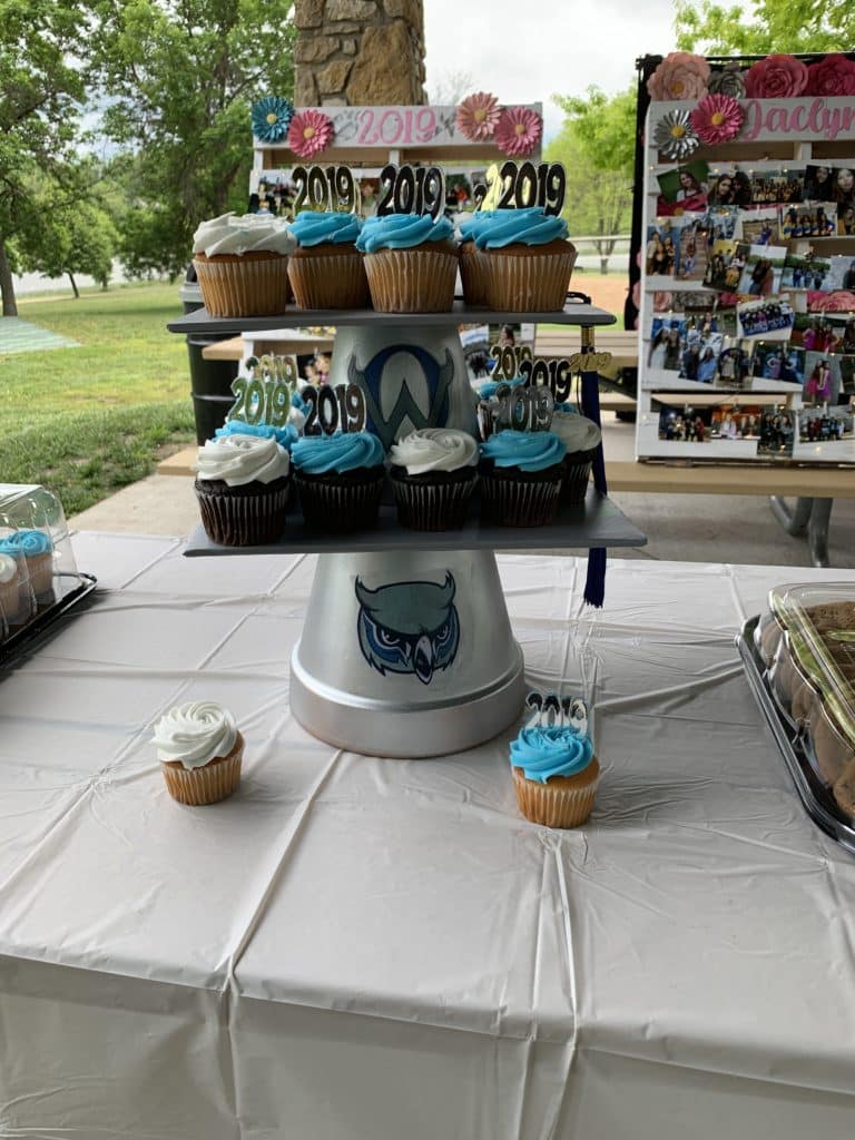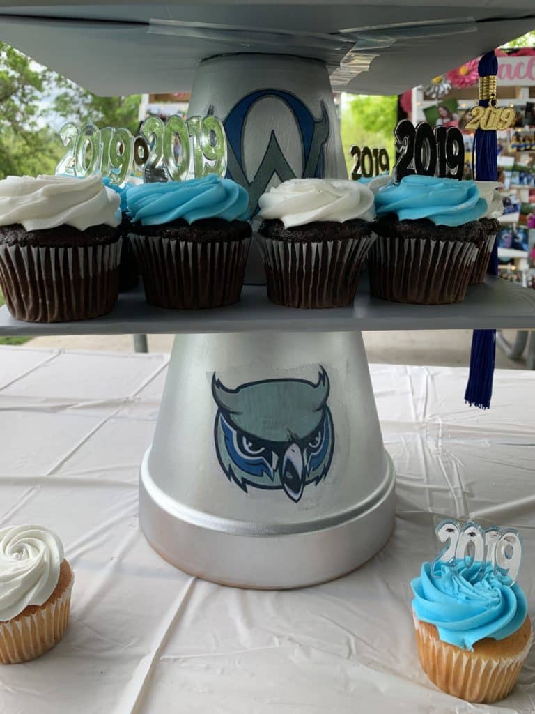 My friend Caroline made this cute cupcake stand for her daughter’s graduation. It was easy to make and was such a great graduation party idea.