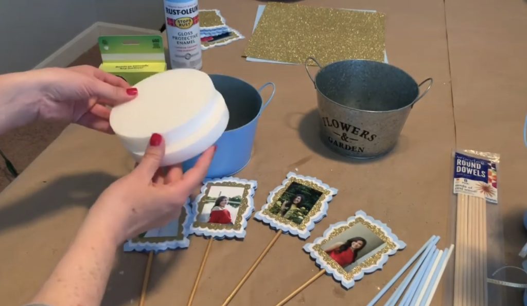 I just wrapped up another DIY graduation centerpiece—and this one might be my favorite yet! With four girls co-hosting a graduation party, I wanted something that would allow each of them to shine. This graduation centerpiece is perfect because it holds four senior photos, giving every graduate a personal touch at each table.