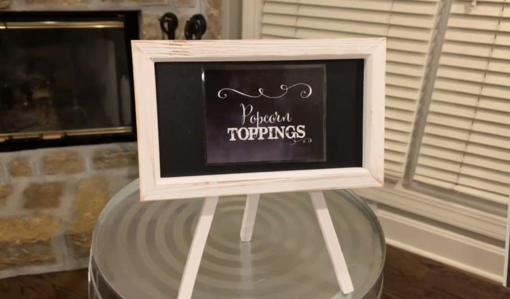 I picked up this little sign from a craft store half price and attached my Popcorn Toppings label from my digital kit to it.