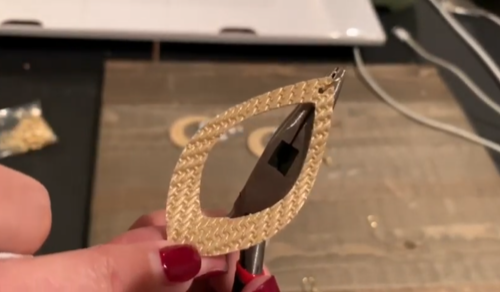 We’re almost done with our hollow leaf faux leather earrings.