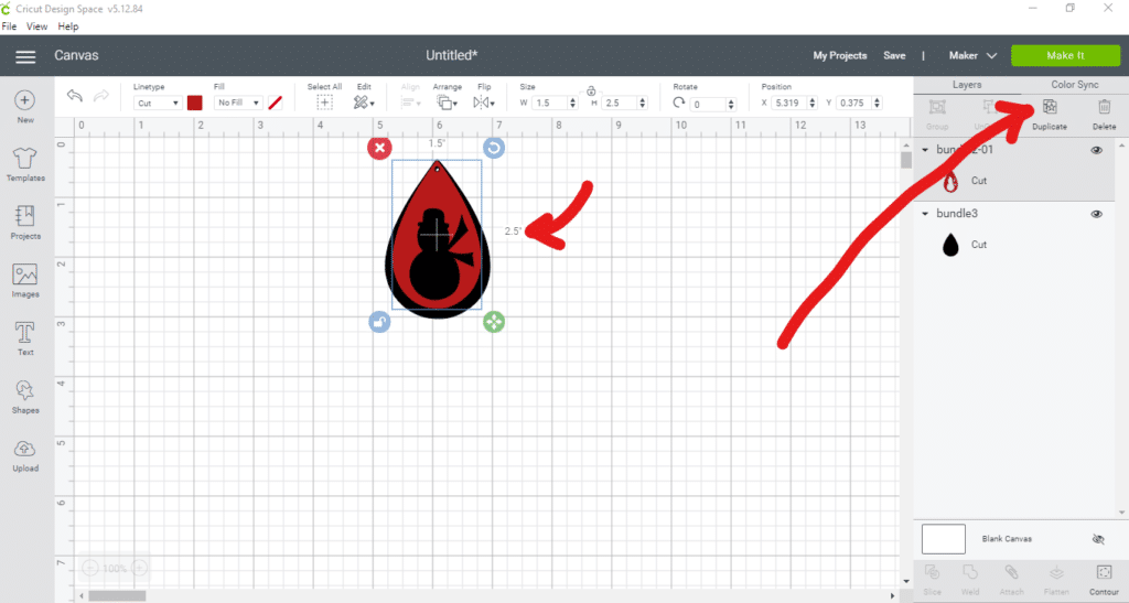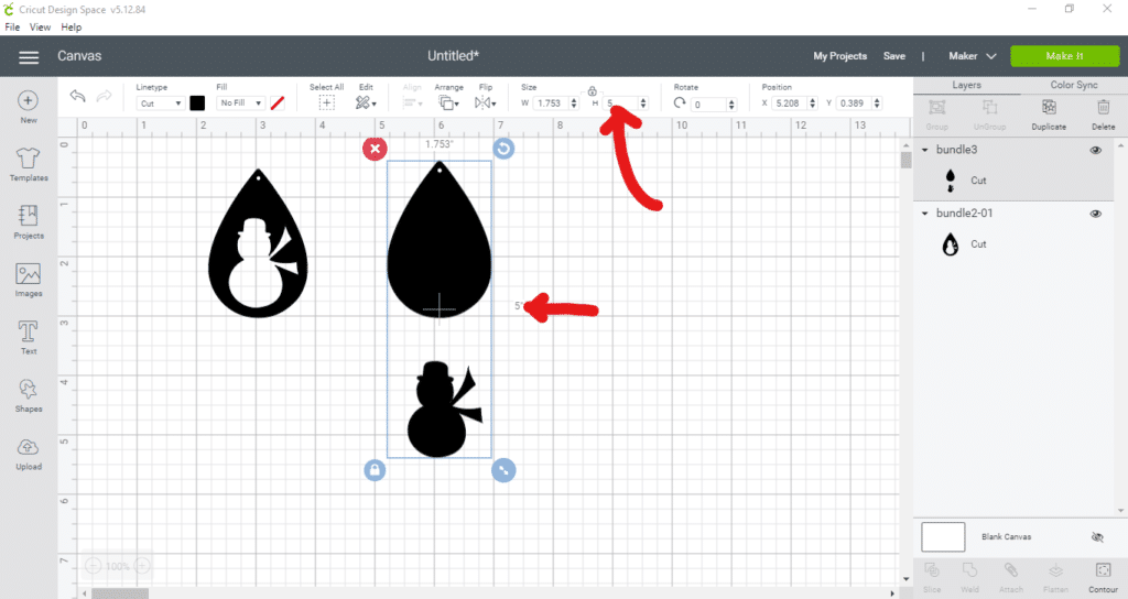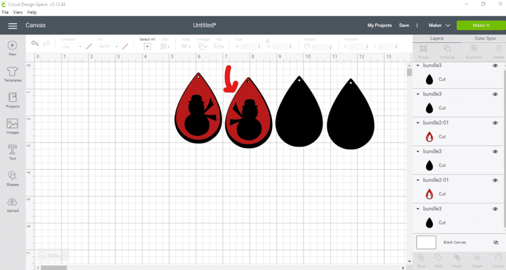 Once you re-size the first earring teardrop (with the snowman cutout), add the other teardrop to your mat.