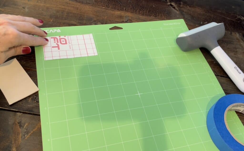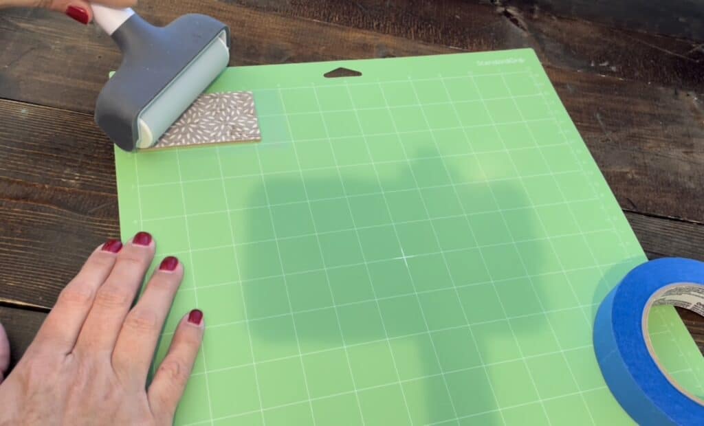 I use a Cricut brayer to make sure the transfer tape and material are pressed nicely on the mat, without bubbles. Having the transfer tape and material lying flat helps keep the material flat to the mat during the cut.