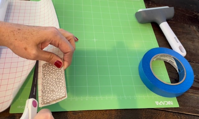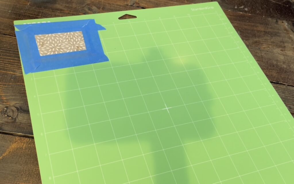 After I press the material to the mat, I place Painter’s tape on each side of the material to hold the material into place.
