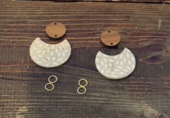 A jump ring isn’t closed. This means with the right tools, you can open it to put on the earring components and dangle the earring from the hook. In this project, I also used them to connect the wood pieces.