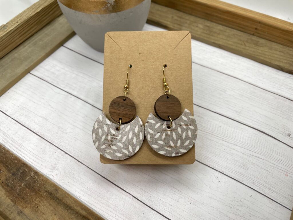 It’s easy to make leather backed cork earrings with a Cricut Maker. Just select from an amazing assortment of cork/leather material, a knife blade, and your basic earring and Cricut tools.