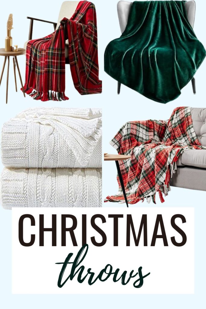 - Christmas Throws: Red, green, and tartan plaid—no icons, no clutter