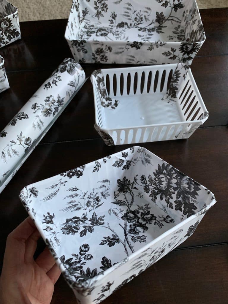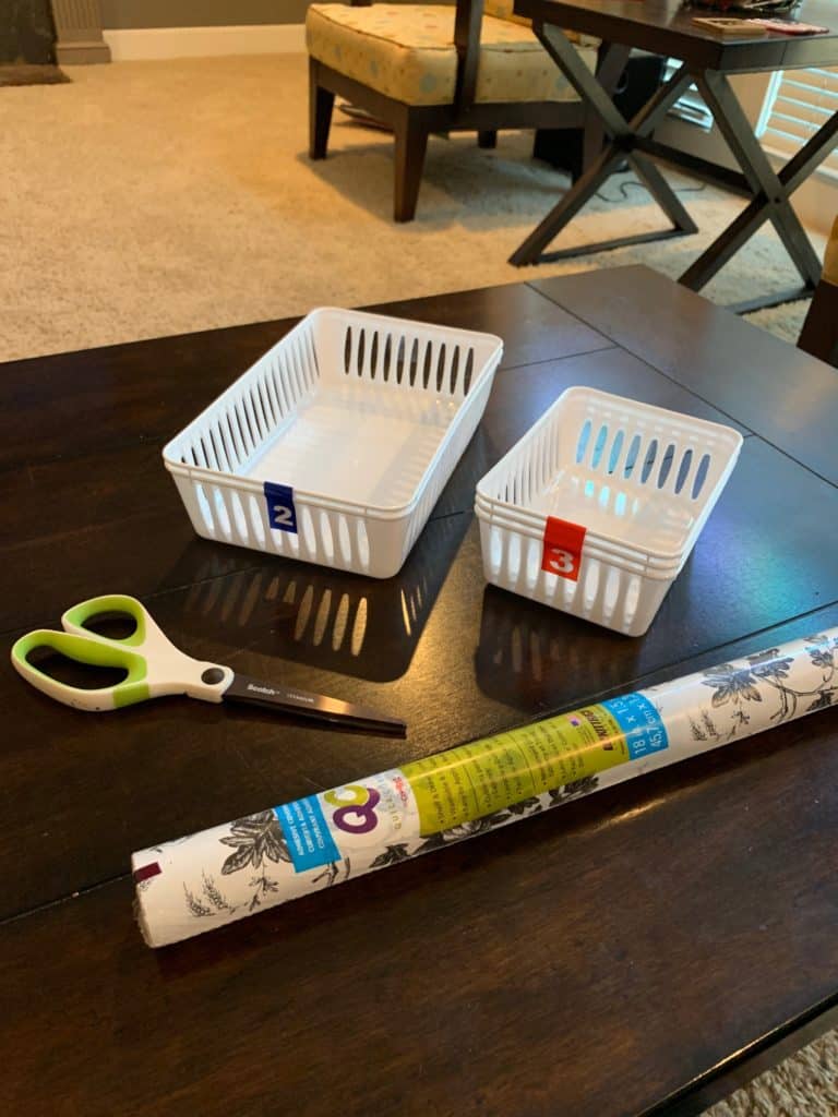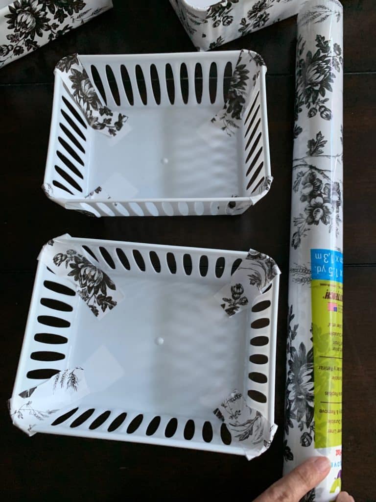 - Floral or patterned contact paper (just 1.50 per roll at Dollar Tree)