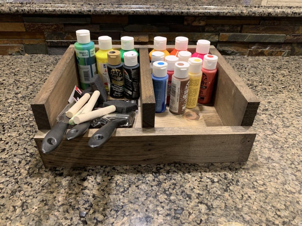 My daughter wanted to bring a party photo backdrop to an after prom party, but only had a couple hours to spare before it was time to get ready for prom. We made a quick stop at Walmart for an inexpensive white full-size sheet and dug around my craft drawers for acrylic paints.