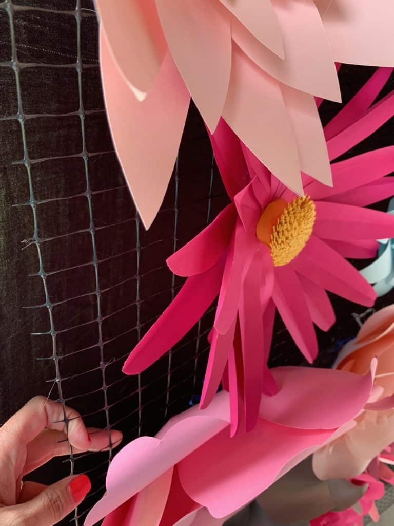 She also hung a black sheet behind the backdrop so that you couldn’t see through any gaps between flowers.
