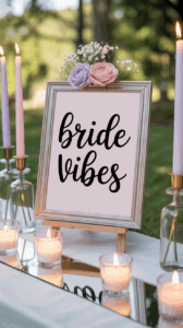 Mix sentimental with lighthearted. Include “Words of Wisdom” cards or “Date Night Ideas” slips that guests can drop into a jar. These double as keepsakes and decor when styled with thrifted frames and simple signage.