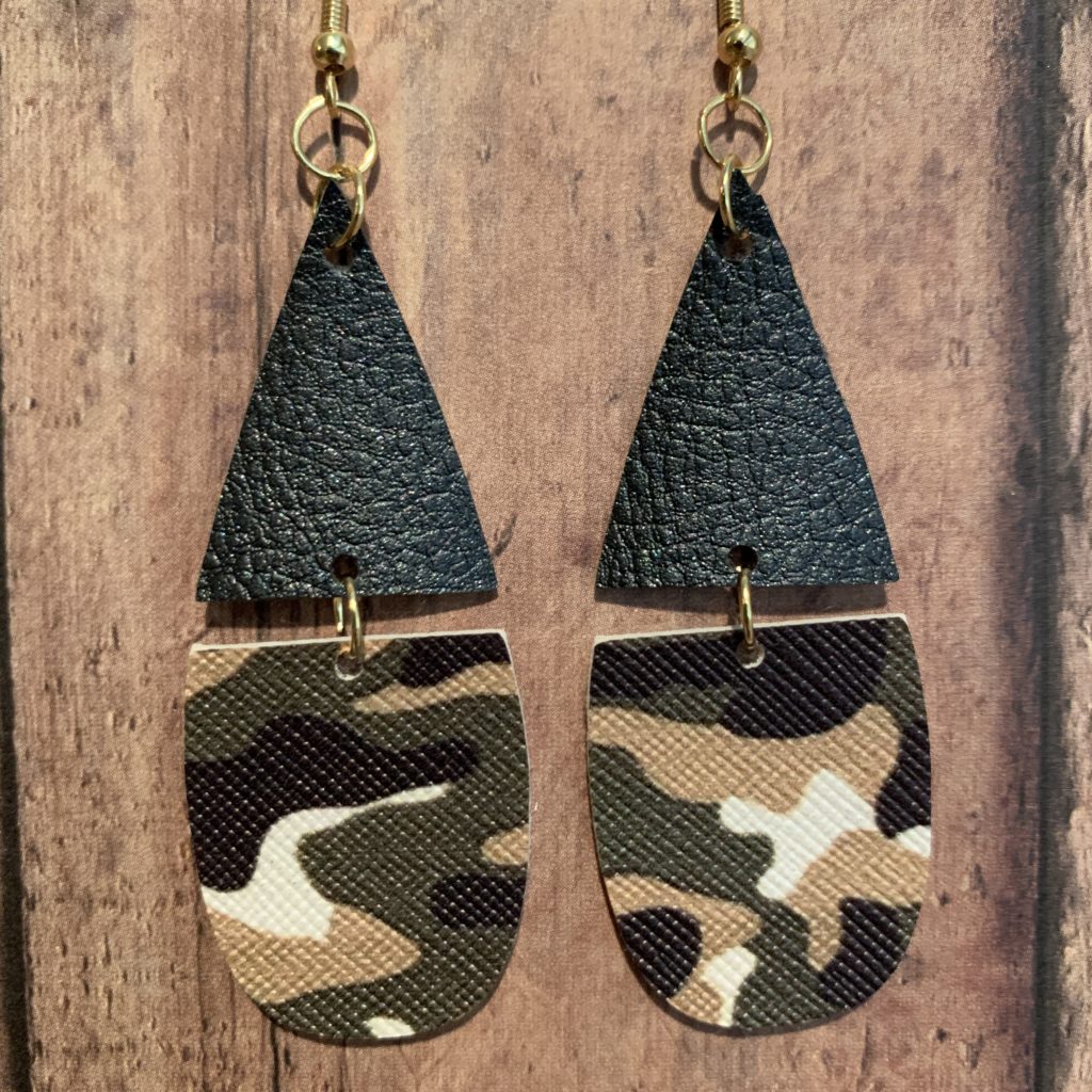 These split teardrop earrings are easy to make. Simply connect the two faux leather earring pieces with regular jump rings.
