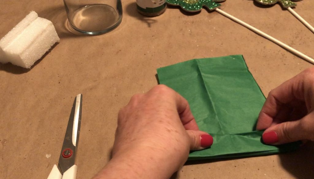 Next, fan fold the tissue, with each fold being about an inch wide.