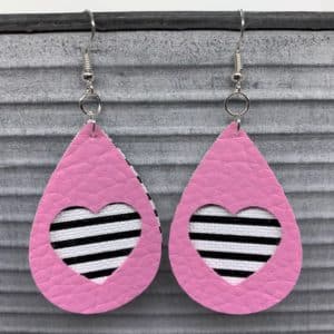 Check out these cute leather teardrop LOVE Valentine’s earrings that have the word LOVE cut out of them. Pick pink, silver, gold, or red to peek through the letters!